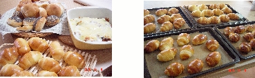 今日2回目の日記です。今焼きあがったパンです。明日のお客さま用。コルネパンは食べる時に卵やツナを詰めて食べます。今日の巨峰レーズンの食パンは、卵もスキムミルクも入ったタイプ。 巨峰レーズンの食パンスーパーキング 400g砂糖 35g塩 4gスキムミルク 20g卵 1個水 240gショートニング 15g巨峰レーズン 100g