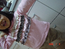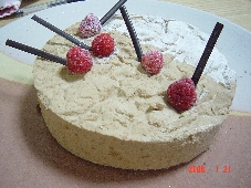 今日はすごい北風!!寒かったです。昨日は昼も夜も子連れ同士のお友達と遊んで、私も娘も今日はまったり気分。幼稚園のあとは、二人で歯医者と買い物に行ってその後は娘は大好きなDoraのビデオ(フリーページに載せてます。)、私はお菓子作りとミシン!!今、家中バニラとキャラメルの香りがいい感じで漂ってます。そのなかで作り上げた作品。フェルトビーズとコットンで作ったコサージュと、あまり布で作った髪飾り。そしていい香りをたてていたケーキはこれ。ビスキュイ・サボワ 型はずし失敗しました。もう少し型を焼きこまないといけませんね。