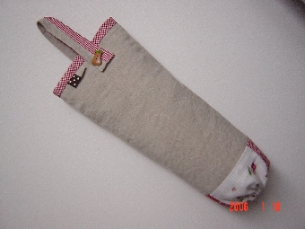 ブログを見てるとたまに見かけたキッチンストッカー、確かに家にも必要!!と思い前から縫おう縫おうと思ってたんです。やっと出来ました。でも、少しパッチのバランスやなんか気にくわなかったわ。きっともう1回作ることになりそう。そしてまたバネポーチ。今度のは少し長めでめがねケースとかによさそうな形。飾りはフェルトビーズとチョコレート色のドットでコサージュを作ってみました。