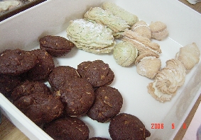 ここのところタックのブラウスが気になってしょうがなくて思いきってつくって見ました。型紙を適当に切ってはって駄目もとです・・。難しくなるのはわかってたけど丸く切り替えたりして・・・。心持ち失敗!!切り替えの所にこまかいレースもはさんでみました。生地はムラ糸コットンのココア色で、胸元の白い所はかすかに刺繍のみえるローンの布地です。切り替えの所が心持ち失敗もあったけどデザインが甘すぎて似合わない??って失敗も・・・・。***********************************今日は用事があって、自由が丘に行ってきました。用事が終わったらおしゃれなカフェでたまにはくつろごうと思って・・・。でも・・・またやってしまいました。なんだかカフェメニューに食欲がわかず結局蕎麦を食べました。とてもおいしいおいしい、ちゃんとしたおそばだったんだけど食べながら“????”おかしい!!!カプチーノを飲みながら、パラソルの下で今度縫いたいものの絵を書いたり、本を読んだりしてるはずだったのに・・・。悔しいから冷凍庫に作り置いておいたマーブルクッキーを使ってマーブルクッキーシューを焼きました。