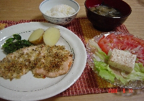 きょうは私がまったりでした。きっと娘もまだ本調子でないのでまったりだったとおもいますが。昼ご飯を食べたあとに“お風呂はいって歯を磨いてお布団敷こうね”って言われちゃいました。今昼ご飯だったんですけど・・・。そして買い物に行った方がいいような気がしながら行かなかったので冷蔵庫の総ざらいとなりました。残ってたローストチキンがあったし、昨日食べきれなかったオーブンポテトがあったので新玉ねぎとキノコ類をいっぱい入れたホワイトソースを作ってグラタンにしました。そして昨日の残りの肉味噌をドレッシング代わりにしてトマトのサラダ。そしてお麩の味噌汁。和、洋、中ばらばらです。その上、今日は昨日に比べて寒いからグラタンにしたのに涼しげにガラスのお皿にトマトのサラダ盛ったりしてます。でもホワイトソースの味に飽きなくてよかったかなぁなんて・・・。なんだかまったりな1日でした。