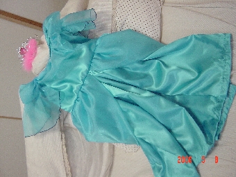 お友達の家に行くたびにディズニープリンセスやプリキュアの服を借りてそれはそれは嬉しそうだった娘。これまではお友達の家でたまに着せてもらうだけで大満足だったようなのですが、一か月前くらいから自分も欲しいとごねだしてました。でも結構なお値段だし、誕生日はずっと先だし・・。先日児童館にいった時になじみの布地やさんに寄って見たらぺらぺらのサテンとオーガンジーが思ったより安くでてたので思いきって縫うことにしました。娘に確認をとった所、ブルーのシンデレラのがいいとのこと去年はイエローのベルだった・・。娘の希望が一番シンプルなシンデレラのでよかった・・。いろいろ複雑なカットがあるプリキュアのが欲しいって言われたらさすがに縫う気にならなかっただろうなぁ。あくまでもおもちゃなのでかなりアバウトです。100円ショップのティアラと指輪とイアリングのセットをつけて娘はご満悦。母も1200円くらいで全部がすんでご満悦!!ちなみに去年の今ごろは結婚式に出るためにちゃんとしたドレスを縫いました。これは今までの中で一番頑張った作品でした!!今見てもよく頑張ったなぁってため息が出ます。