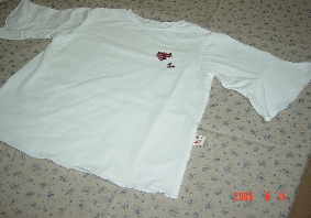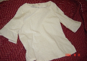 子供の白いTシャツ第2段です。今度はベルスリーブにして見ました。この白いニットは、いい感じの艶とはりがあって買った時は失敗かなぁと思ったけど結構よかったです。そして胸にRRさんの赤系チェックの布地を使ってハートのアップリケこれは新しいミシンの機能を始めて使ったものです。繊細なアップリケはやはり手縫いの方がきれいかな・・。このベルスリーブ型のTシャツ自分にも欲しくなっちゃったけど、布地がないんですよねぇ・・。**********************************今日はお客様が来るのでケーキを作りました。ホワイトチョコレートのムースに少しグランマニエを香らせて・・・。ムースの中段にオレンジ上部は生クリームで仕上げて生オレンジを煮てとろみをつけたソースをかけました