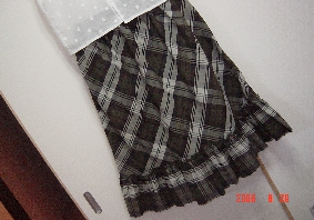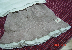 おとといから昨日にかけていろんな意見を戴いてほんとうにありがとうございました。意見を参考にしながら今回作りたかったものに近いデザインで一番手間がかからない修正を考えたらこうなりました。もともと私のはかなくなったジーンズをつぶして作ってたので残り生地も殆どないし。左側のレースとフリルの間のところに5cmほどの穴をあけてしまってたんです。その部分を切り取って残り少ないハギレを足してその縫い目にレースはさんで、まるでもともとレースをはさむデザインだったかのように・・ウエスト部分には一応ポケットもつけました。今回ずっと考えてて思ったのはレース編みが出きればなぁって事。この穴をレース編みで埋めたらかわいかっただろうなぁって。ロックミシン三年間使ってきて始めてのショックでしたがもう2度とならないように、がんばろっと。**************************こんな事故もありますがハンドメイドの品オクに出してます。こちら**************************今日は“ナチュラル・キッチン”いってきました。前回行った時より今欲しいものが一杯あって思わず買い込んでしまいました。大体は素材ばかり・・。さてどういう形になっていくかな??
