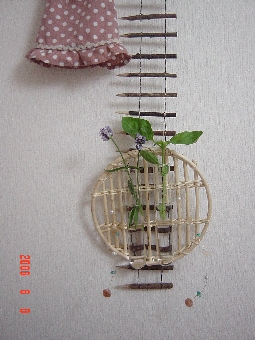 先週、ナチュラルキッチンでゲットしてきたものを使って、壁掛けの花瓶を作ってみました。レイアウトはお店でやっていたものを参考にして・・・。見えにくいけどワイヤーでシェルボタンやパールも垂らしてみました。キッチンの出口の壁につけたけどしばらく通る度に癒されますぅ*************************************今日は最進の塩ときび砂糖をっ使った山型食パンキャラメールクリームを巻きこんだ渦巻きパンを焼きました。**************************************昨日娘は幼稚園でちゃんと先生と話し(??)あってきて機嫌よく帰ってきました。よかった!!いつもより先生と1日べったり遊んでもらったとのことでほんとうにうれしかったみたい。ってことは、普段ほっておいてもあまり問題のない感じの娘って、やっぱりずっと先生と一緒でいることがなくて少し不満だったのかな??