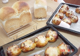 今日は皆さんとパンを作りました。こうやって皆さんと作るの時に歴代3人目の男性の方も御一緒です。思えばいろんな縁があったなぁと思いました。お一人目は定年近いおとうさんでしたしお二人目はカナダ人の方でした。今日のメニューは山食とレーズンバンズ。今日もいっぱいおしゃべりも弾んで楽しいものでした。**************************************ところで晩ご飯・。毎日写真は撮ってるんですがなかなかアップができません。枝豆とじゃこのご飯。豚の蜂蜜生姜焼き茄子のみょうが味噌麩の味噌汁おろしハンバーグ