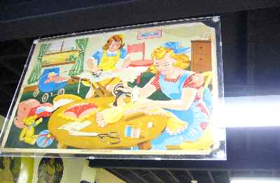 カナダで見てきたアンティークのソーイング雑貨たちこれらはティルソンバーグから車で15分くらいのところにあるアンティークショップで見つけました。こちらのお店は、ものすごく雑多でものすごくいろんなものがありました中にはアンティークというよりはただの中古品も!!でも面白いものがいっぱいあってとっても楽しめました。前回の日記のアンティークのものさしと指貫もこちらのものです。まずはソーイングをする女の子たち・・そして古いミシン糸、ミシン糸の入ってた箱、ソーイングボックスふるーーいレース糸のセット、これはきばみがすごくてもう実用にはならないものでしたが。この箱は限りなくほしかったんですが、約5000円とお高め(??)でもいい感じですよね。そしてソーイングをモチーフにした額、これももう一枚いい感じのがあってほしかったなぁ・・それからこれは違う店のものですがこれは古いバッグの口金です。新しい布地をつければまたきれいなバッグになります。自信がなくて買えませんでしたが・・。 ところでこれはまったく関係がないですが、ショッピングセンターで寄付を募集し、寄付した人は葉っぱに名前を書いて大きな窓ガラスにはり素敵な木をつくるもの。友人のお父さんと新聞を買いに出かけた娘はちゃっかり名前を残してきてました。この二人はまったく言葉が通じないけどほんとうに仲良しでした!!