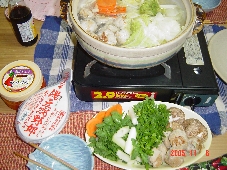 鍋に入れる豆腐はまたまた話題の“男前豆腐の湯豆腐野郎”。今日始めて 男前豆腐 の話題のHPを見ました。確かにうわさ通り。娘が気に入って踊り狂ってました。HPを見てわかったのですが、我家が昔から冷奴ならこれ!!と使ってたオタマ豆腐もこちらのものでした。