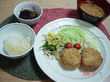 1、里芋 2、ジャガイモ 3、玉ねぎ 4、牛ひき肉 5、卵 6、パン粉