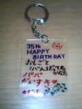 手作りの、メッセージ入りキーホルダーとケーキを作りました。