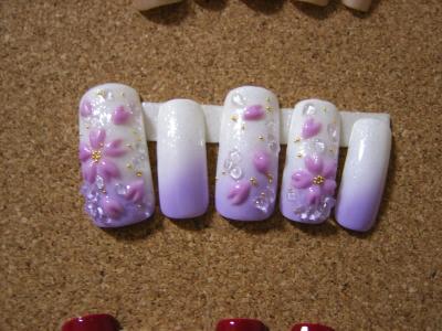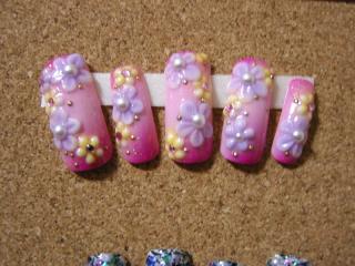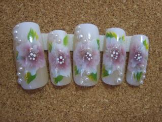 エアーでベースを作って、3Dをオン。ポテッとしたお花にはパールのストーンの組み合わせが好きです。こーゆう系はなにげに得意で、チャチャッと出来ます。もうすぐ春だなぁ