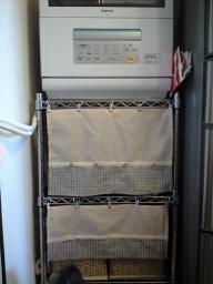 趣味の時間です食洗機を置いているアルミ棚の下2段に、ミキサーやポット、乾物や缶詰などを置いているのですが、すぐぐちゃぐちゃになって嫌だったので、以前からイメージしていた目隠しカーテンを作ってみました。左下の変な黒いのは猫のシッポです。食洗機の横には牛乳パックが溜めてあり・・・、とっても生活感ですが、う~ん、スッキリ5年ぶり位にミシンさわりました高卒後は服飾専門学校なんかに通っていましたが、それが将来何の役に立つこともなく、子供服を作る、なんてこともなく。当時はそれがやりたかった事だし、ひととおり知識も得て気も済んだのでまぁヨシってことで。でも、洋裁などは今でも好きな分野だし、道具が一通り揃っていると、ふと思い付いた時、とても便利なものですねぇ。いやぁ、贅沢。結婚当初とは家具など趣味も変わってきて、普段過ごす場所はカントリー系もいいなと思うようになってきた今日この頃。まだ子供も小さいので、家具など買い換える気はありません。なので、雑貨など小物からちょこちょこいじって行こうと思ってます。先日、長男の保育園バッグの布を買いに行ったので、自分の分も、ちゃっかり購入キナリとチェックの生地を組み合わせて、境目にコットンレースのリボンを縫いつけ、木のボタンをチョン、チョン、と。っつーか、コットンレースのリボンって、意外と高くてびっくり。いいなと思ったのはちょっと高かったので、ショボくなるかな・・・、とか思いつつも、お手頃な物を購入しました。あと、食器棚のガラス部分も目隠しする予定です。生地が余ったら、こんな感じの、コースターも作ってみよう。しかし就園前の男子がが二人居ると、こんなんもなかなかやっとれませんね。。。これが女の子二人だったら、全然違うんだろうな~。