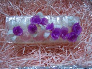 初めて作ったデコパージュです花びらはシルバーラメで縁取りして、立体感をさらに演出しています。バラの花束が出来上がった時は嬉しかった~☆達成感。初めてだったので、まだ自分で色を作るとか知らず、既成のカラーパウダーをそのまま使用していたので(EZのやつです)、ブライダルっぽい、やわらかほんわり感はありませんが計画生なく思いつくまま製作したためラインストーン不足に陥り、ストーンの配置がまたなんとも中途半端・・・。色んな意味で、思い出の作品であります(^^ゞ