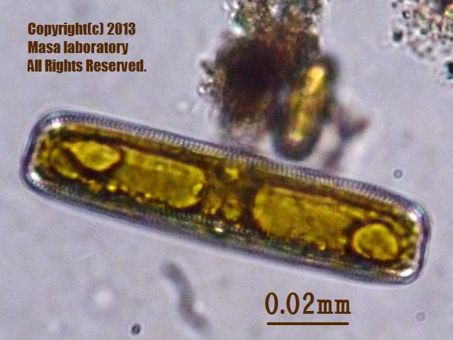 「えぇ~っ! トッポを食べたことないんですか!? それ人生だいぶ損してますよ」----------図1の写真を見て、自分が 『あんず棒みたいだ』 と発言したところ、「あんず棒より、トッポですね」とTH先生。 トッポって何? トッポジージョのこと?その言葉を聞き、しばし絶句したTH先生が冒頭の言葉を発した。自分はスナック菓子を全く食べないので知らないのは仕方ない。そういえば、同じ事を学生にも言われたことがある。図1 : 中までたっぷり。 だそうだ。 学生Y 「MASA先生ってお菓子で何が好きなんですか~?」 自分 「チョコレートかな」 学生Y 「他には?」 自分 「昆布」何がおかしいのか、しばらくYは笑い転げていた。 学生Y 「先生、最近のお菓子は食べないと人生損しますよ」お菓子を食べながら話を聞いていたKF先生が一言。 「いいんです。 MASA先生は即身仏になるんですから」----------図2 : ギョウザケイソウ昔は散々な言われようだったが、自分が昆布をつまむついでに周りの人に少しおすそ分けをするという、地道な布教活動のおかげで、今では昆布がブームだ。 先生 「いや~。昆布ってグルタミン酸のせいか美味しいね」 自分 「(腕組みしながら) そうでしょう。そうでしょう」しかし徐々にブームが廃れていく気配があるのはさみしい限りです。(うま味のない昆布の話・おしまい)----------【登場人物紹介】【TH先生】:たぶん、金融・経済学専門。 スパゲッティとリラックマをこよなく愛している女性。 語尾に♪が付くような独特の発音をする。【KF先生】:たぶん、生物専門。 お菓子会社の開発部に勤めたかったらしい。 どんな時でもニコニコしている女性。 休憩室では転寝をしている姿をよく見かける。----------図3 : イカダモその造形からファンが多いと勝手に思っているイカダモ(筏藻)です。(右側の微生物)この細胞4つセットという形はイカダモの基本形であり、これを元に様々なバリエーションが存在します。座布団の角房のように、四隅から出ている突起物が楽しい一品です。トッポとギョウザとイカダモをスケール図に載せると図4のようになります。図4 : ミクロの背比べイカダが小さいのか、ギョウザが大きいのか。それが問題だ。----------