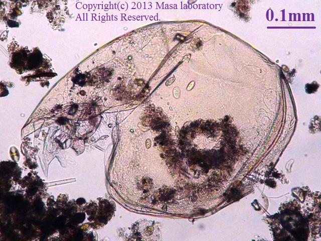 『うちゅうじん』 を発見した事はありますが、乗り捨てられた宇宙船をこんなにも綺麗に撮影できたのは初めてです。図1 : ミクロの宇宙船 「中身はいったいどこへ・・・。探しましょう、モルダー」図2 : 仮面舞踏会へようこそケイソウの一種です。このケイソウは細胞分裂をすると・・・図3 : ドラヤキケイソウどら焼きになります。ところで、捨てられていたのは宇宙船だけではありませんでした。図4 : おそらく昆虫の脚ミクロのシンデレラが、忘れていった脚です。おとりで切断したのか、もしくは食われた残りなのか。いずれにしても、随分毛深いシンデレラだったようです。----------