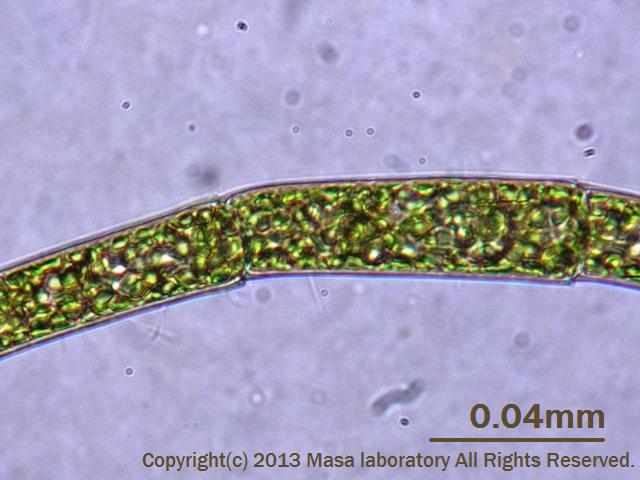 古来の日本は、色の表現が4つしかありませんでした。白、黒、赤、青の4つです。そのため、緑は 『青』 と表現されました。図1 : アオミドロ今更、ミドリミドロじゃ呼びづらい。目が慣れると、らせん状が観察できる。その後、茶色や水色、灰色といったように語尾に『色』を付けることで色の表現は増えていきます。元の4つの色だけは特別扱いとなり、語尾に 『い』 をつけるだけで形容詞となることを許されました。図2 : 抜け殻に取りつくケイソウ無色とは何色なのだろうか。というのは愚問である。無色は色の本質だから色々です。----------変わったミドロを発見しました。図3 : ソデガラミ風随分と刺々しいアオミドロです。江戸時代の捕物に使っていた『そでがらみ』にちなんで、ソデガラミアオミドロ とでも呼ぶことにします。図4 : ソデガラミアオミドロ節に対して、トゲが随分と長いです。となると、同スケールに対する防御としては大きすぎるし、ひとつ上のスケールに対してだと、トゲが小さすぎて防御の意味を成しません。実は、意味などないのが正解だったりするのが、この世界です。・・・書いていて突然気が付きましたが、これは植物の根っこです。いやはや。 ネットの情報は恐ろしいですね~。まるで嘘が真のように書き連ねている。では、また次回。 さよなら。さよなら。さよならっ。----------