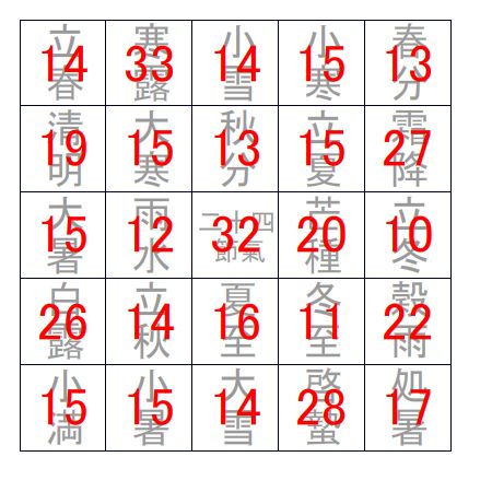 つまりこの二十四節気の表は、 『総画数の魔方陣』  なのです。