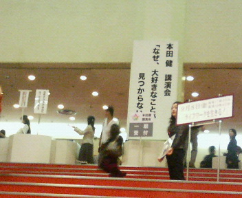 今日は午後から東京へ。本田健さんの1年3ヶ月ぶりの来日公演(日本人ですが・・)タイトル:「なぜ、大好きなことが見つからないのか?」に行ってきた。同じ時間、友人はF4のコンサートですが、こっちはセミナーで興奮してきた。。。「本田健にいくねん」 友人「?」我ながらマニアになってしまったなあ・・・・セミナーといっても、会場も中野サンプラザだし、開始前の雰囲気はコンサートと本当に良く似ている。CDや本も売っているし、花もたくさんきているし、何よりも「にぎわって」いるいまから始まるぞーっという楽しい雰囲気いっぱいだ。総勢2200人開演45分前なり数年前までのセミナーでもっていたイメージとはまったく違うもの。ねむい、疲れる、つまらない⇒ワクワク、ドキドキ、楽しい♪マニアなだけではありません。本当にそういう演出をされるんですから。すごい。後半の本田健さん自身も「これがたのしみでやってきた」という質疑応答もものすごい挙手、スタンドアップ挙手もあり。なんとか当ててもらおうと、光もの、ハンカチ、いろんな作戦をされるかたもいてエキサイト今回の講演は直前キャンセルがたくさんあったようだが(そもそもキャンセル待ちも何百人もいるので会場自体はいっぱいだったが・・)その中で、「仕事がいそがしくていけなくなった」というのがあったようだ。本田健さんいわく「そういう人にこそきてほしいんだけどなあ・・(タイトルより)」チャンスにちゃんと時間が割ける自分はありがたい!!と思った。