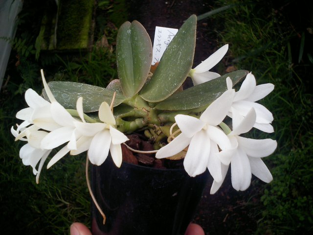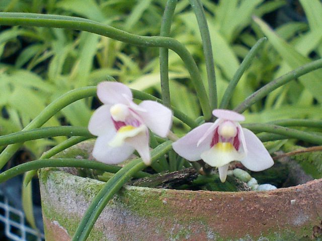 アンシストロキラス属の原種、ロスチャイルディアナスです。ケニア、ウガンダ、ギニア、シエラレオネに自生する着生種です。休眠期は水を切らなきゃならないのにかかっていてイマイチです。