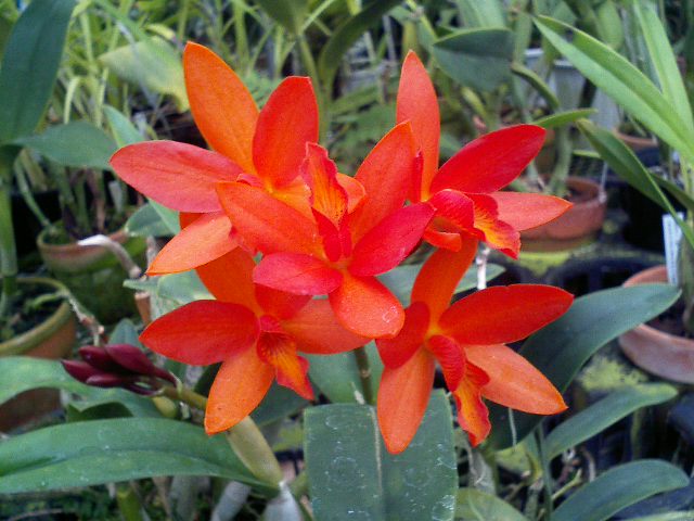 ソフロレリオカトレヤ属の未登録交配種で今月11日に載せたものですがほぼ満開、蕾あと1輪です。