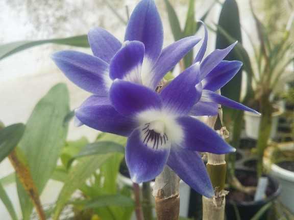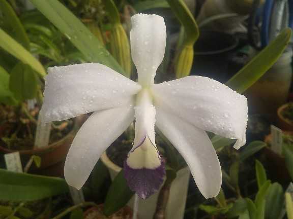Zglm.Rhein Moonlight ‘#1’ジゴラム属の交配種、レイン・ムーンライト ‘#1’です。ジゴペタラム属とジゴセパラム属の属間交配種でペタルがリップ化したメリクロン変異個体です。Phal.violacea fma.coeruleaファレノプシス属の原種、ビオラセア fma.セルレアです。マレーシア、ボルネオの200m以下の低地に自生します。ベリーナに比べ色が薄いブルーで花が小さめです。Den.goldschmidtianum fma.albumデンドロビューム属の原種、ゴールドシュミッティアナム,アルバムです。台湾、フィリピンの着生種で普通種は紫紅色ですがその変種、満開です。今日はよく晴れて-0.2℃~14.5℃と冬日、朝は霜で真っ白でした。明日は晴れのち曇りで1~17℃の予報です。にほんブログ村 メール欄