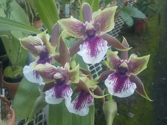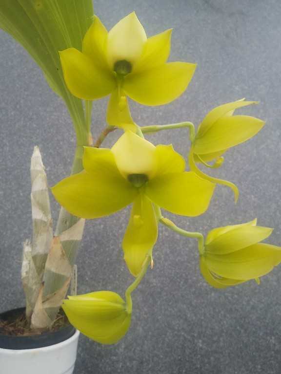 Den.victoriae-reginae ‘Center Field’ SM/JOGAデンドロビューム属の原種、ビクトリア レギネ ‘センターフィールド’です。フィリピンの中高地に自生する着生ランで乾燥と暑さを嫌い、栽培やや困難の品種とされています。1年前に入賞した選別個体、濃色大輪丸弁です。Cyc.Jumbo Cooperシクノチェス属の交配種、ジャンボ・クーパーです。原種同士ワーセウィッチーとクーペリの交配、大柄で見応えのある花です。9月に咲いた大株は嫁ぎましたがバックから作ったほうに花が咲きました。今年9月8日に載せた花C.walkeriana fma.coerulea‘San Gabriel’カトレヤ属の原種、ワルケリアナfma.セルレア‘サン・ガブリエル’です。ブラジルの標高2000m以下に自生します。今日は親戚の葬式、曇りのち晴れで6.1~11.3℃でした。出かけるときはほぼ曇っていたのですが、ハウスの天窓開けて暖房の電源切って行って正解でした。明日は晴れて1~12℃の予報です。にほんブログ村 メール欄