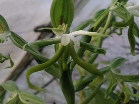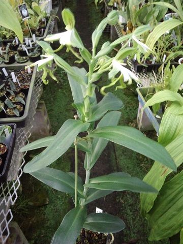 標高 1200m以下に自生する地生蘭です。白いところはペタルで2裂、