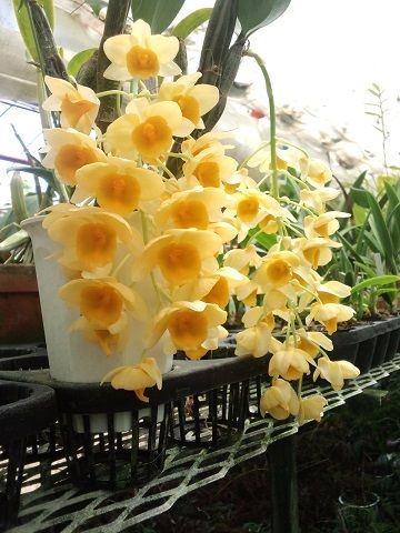 デンドロビューム属の交配種、ヒビキ ‘ヤマナミ’ です。