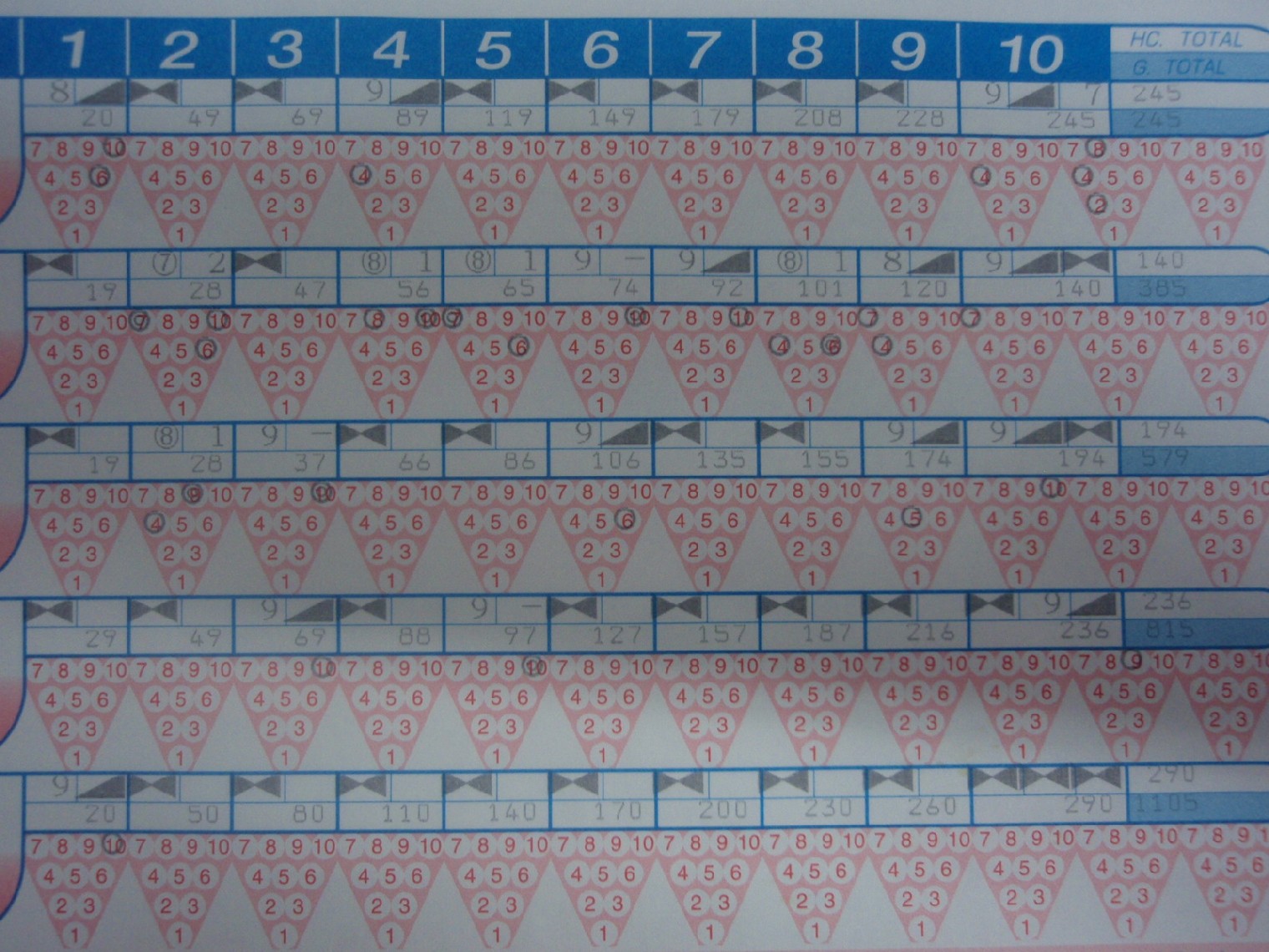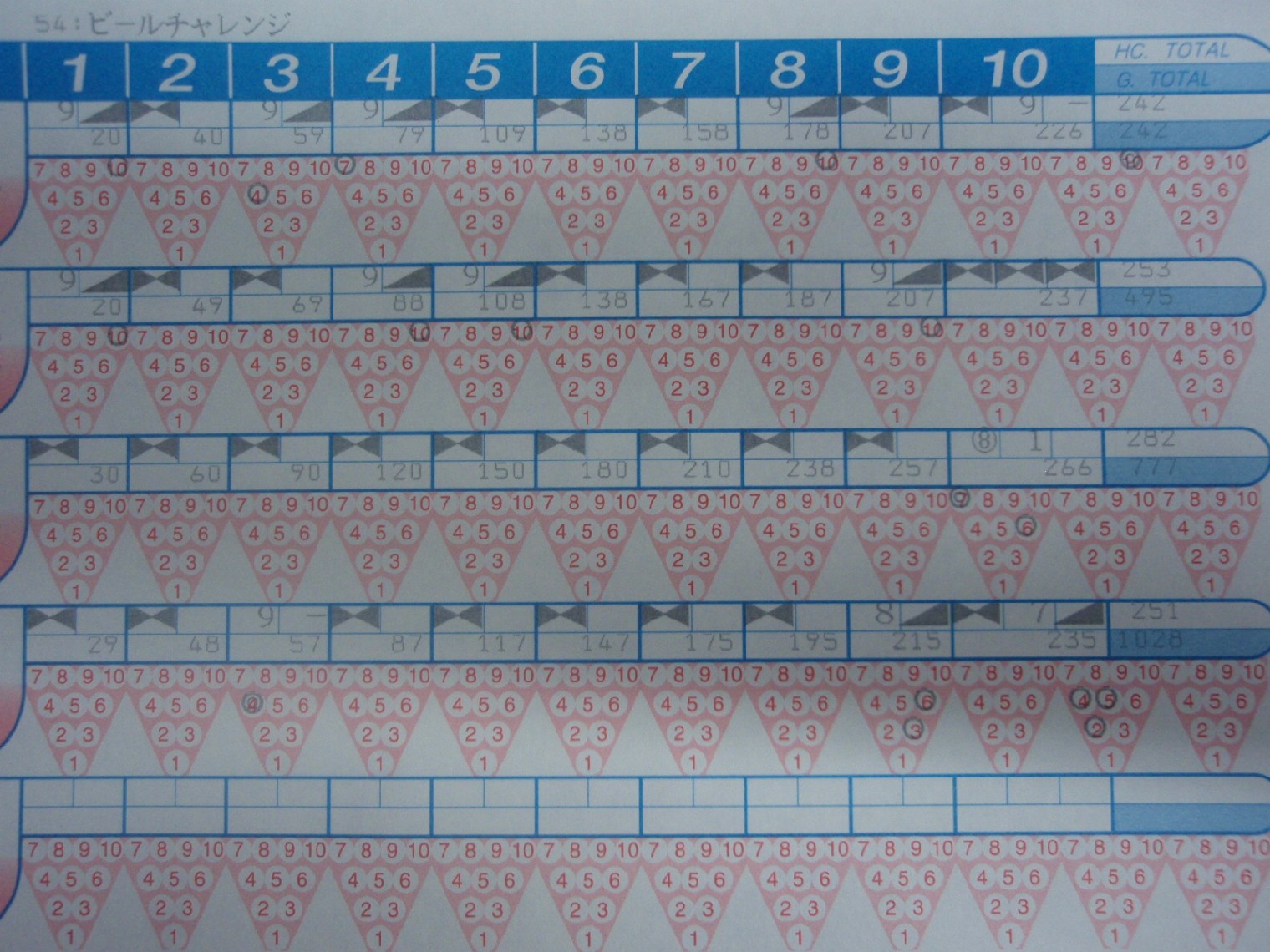 PCが壊れた事と10日間の海外出張があったので久々の更新です。出張から帰った当日は、早速サウンドボウルへ。5月の海外出張から帰ってきた直後と同じく出張前と何かが違う次の日の水8カップでも、全くスペアが取れずアベ178で撃沈大会後、何が悪いのかを追求する為に納得いくまで練習。その結果、原因が分かりましたいつもはボールを持った後に小指の開きを狭く調整していたのに、ボールを持った時のままの状態で小指が広がっていました。小指が広がった状態 ゲーム数:20 AVG:163.2小指が狭くなった状態 ゲーム数:27 AVG:206.4ちょっとした事ですが、スコアに大きく響きました。で、3週目の成績。トータル:8,836 ゲーム数:47 AVG:188.0 H/G:290 H/S:7035月と6月はH/G:258でしたので、やっと更新する事ができました写真には写っていないのですが、1フレのスペアの後、次のゲームの2フレまで13回連続ストライクでしたので、今年中にパーフェクトをって甘い気持ちになっていますここまで上達できたのは、私に目標を与えてくれた名和プロ、そしていつもアドバイスして頂くサウンドボウルの磯部支配人と師匠である小幡さんのお陰です。皆さんに感謝致します。