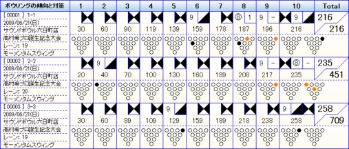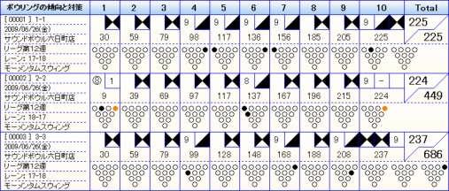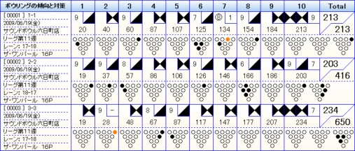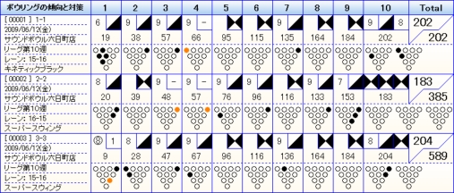 今回はH/C16の人が対戦相手。久しぶりに全勝をって思い、外出先から往復360kmを掛けてリーグに参加。しか~し、そんなに甘くないですね。3G目は辛うじて勝てたものの、1・2Gとトータルそして目標スコアは数ピン差で逃してしまいました。心のどこかで油断があったのかもしれません。AVE:222.63G全てノーミスゲームにできるカウントなのに出来なかった。またカバー練習しなくちゃ。