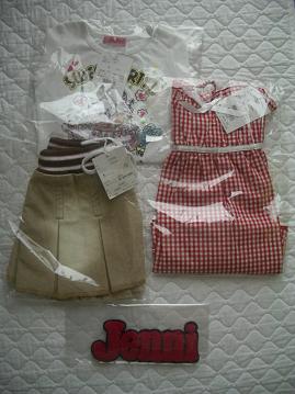 jenniのハイカットスニーカー&ショートパンツを購入しました!(最近、jenniの服にハマってます。)スニーカーはとてもかわいい!!でも、一個しか見つから無かったのでオークションで色&サイズ違いを購入。ショートパンツも90cmと95cm。でも、ウエストが調節できるのでOKでした^^jenniってホント安くならないから新着UPされた時に欲しいのGETしとかなきゃです。色々なネットSHOPで探しても見つからないことが多くて購入を断念することが多いかな。あとは色違いのロンTとTシャツが欲しいな~。でも定価だとこれ以上は無理ですお得なセール情報あったら教えて下さいね~。