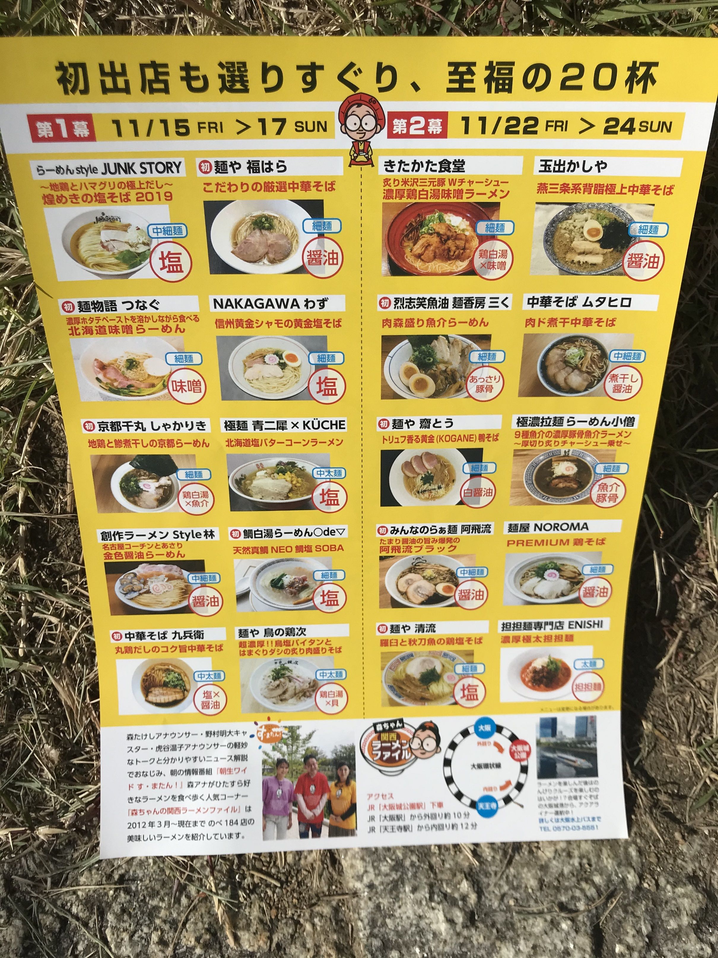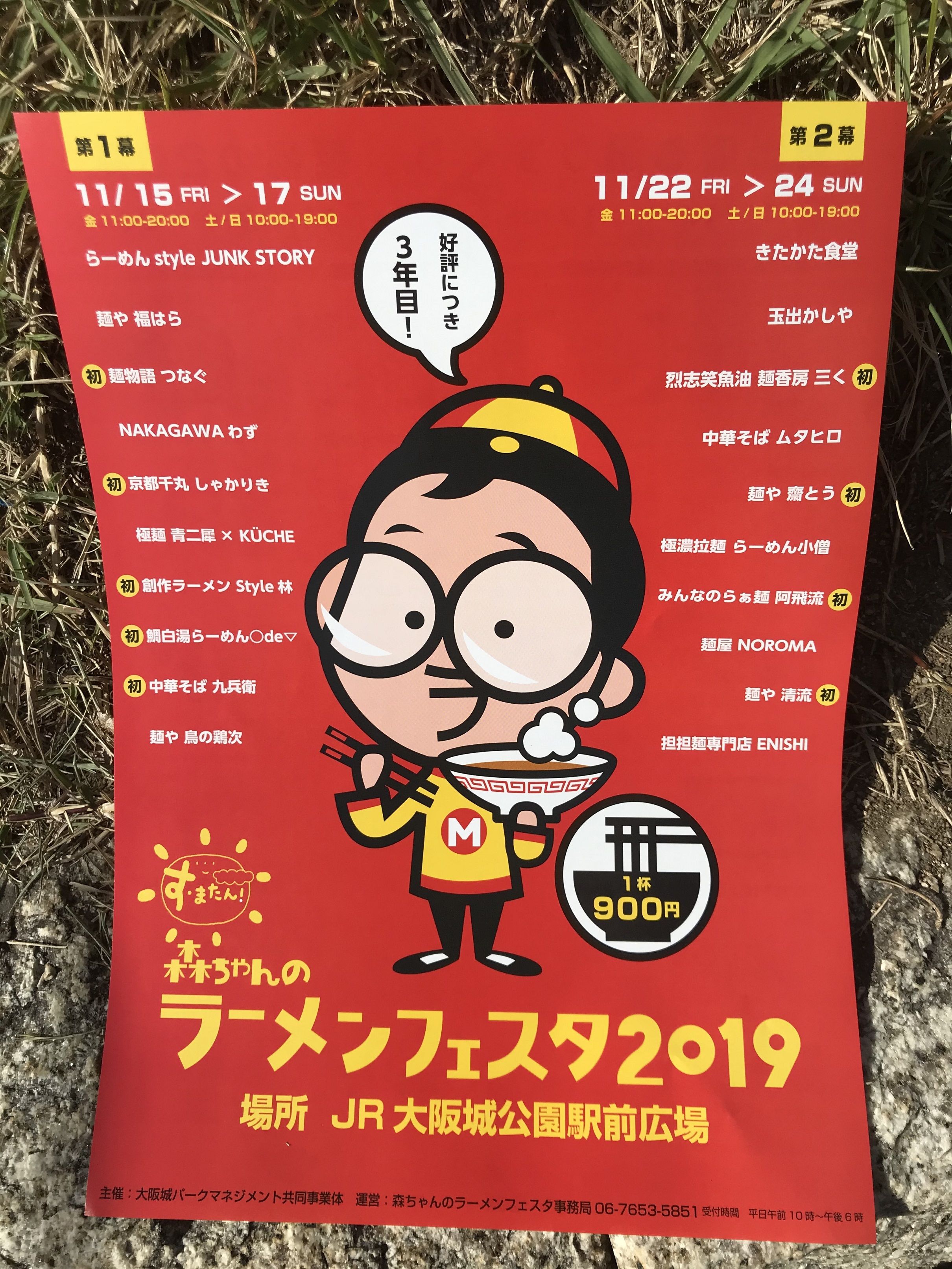 ​​​ ​関西ローカルで放送されている「朝生ワイドす・またん!」(読売テレビ)のコーナー「森ちゃんのラーメンファイル」から、厳選された店が出店する「森ちゃんのラーメンフェスタ」が今年も開催されたので、ラーメン好きな私は大阪城公園へ行って来た~​​​​​