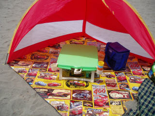 息子は波が怖いらしく、海に入れずに砂浜で立ち往生(^^:)