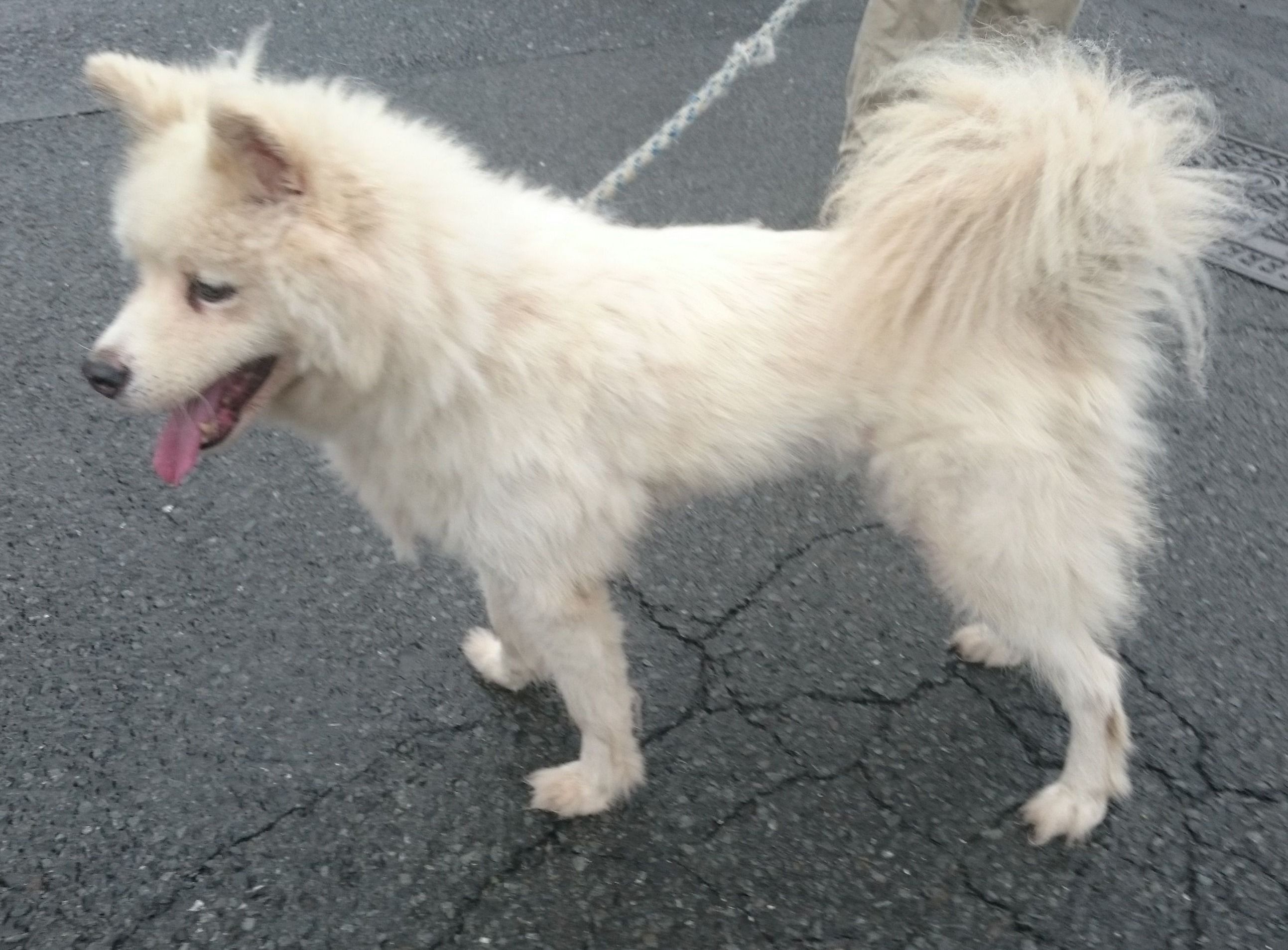 病院の帰りの写真です。毛替わり時期なのと、手術のためにお腹の毛を刈られていてすごく痩せたように見えますが、体重はいつも10キロ前後の痩せっぽちで、変化はありません。