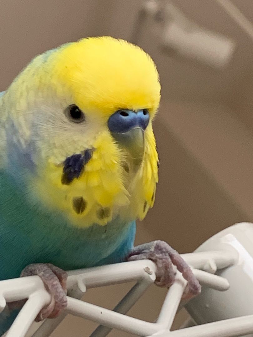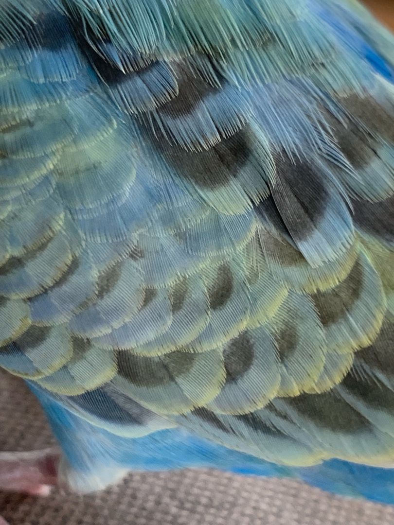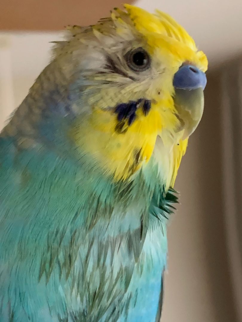 朝から元気なセキセイインコ 水浴びをしたようで 🎵 毛が散らかってるね (笑) 🎵 おや? まゆげがあるみたいだよ(笑) 🎵 インコ臭プンプンさせてご機嫌なたまちゃんなのでした(^^)