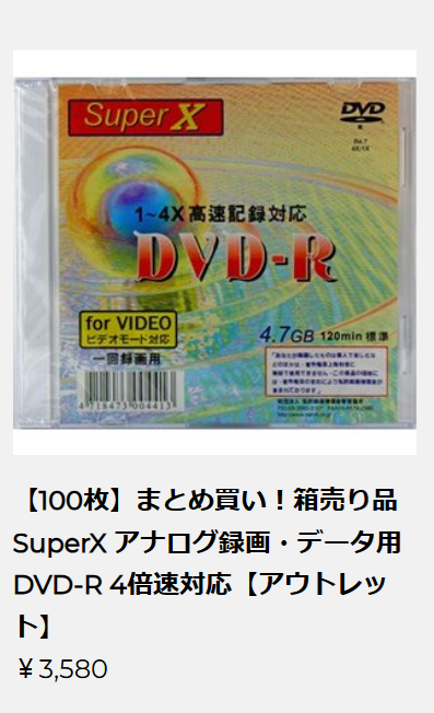 さて、もしかしたらほしい人にとってはとんでもなくほしいものがある…のかな?カセットテープやフロッピーなど最大20%オフ!磁気研究所の「レガシーメディア大放出セール」カセットやフロッピーとかありますけど、他にはCD-R CD-RW8cm CD-Rアナログ等倍速DVD-R アナログ録画用(データ用) 2倍速DVD-R アナログ録画用(データ用)4倍速DVD-R アナログ録画用(データ用)8倍速DVD-R(データ用)1倍速DVD-R(データ用)2倍速DVD-R(データ用)4倍速DVD-R(データ用)8倍速DVD-R(データ用)16倍速DVD-R 録画用DVD -/+ R DLDVD-/+RWDVD-R 16倍速DVD+R8cm DVD-RW8cm DVD-RBD-RBD-REDVD-RAMMOディスク フロッピーディスクデータカートリッジ オープンリールLTOMCカセットテープZIPDVD-RWセキュリティーDVD-R DLT4mmデータテープ(DDS・DAT)8mmデータテープ(DATA8)QIC(1/4インチデータカートリッジ)データ用カセット ExabyteTravanAITビデオカメラ用ミニディスクCMT(3480テープ)カセットテープ(ノーマル)カセットテープ(ハイポジション)音楽用DATビデオテープとまあ、カテゴリだけでこれだけありまして、ほとんどのカテゴリで(モノとしてはともかく)在庫があるという、いらん人にはまったくもっていらん、欲しい人にとってはものすごく欲しい陣容となっています。カセットがノーマルとハイポジでちゃんと分かれてるのね。先のとおり、カセットとかフロッピーとかは確かに相当昔からあるメディアですが、物量が圧倒的なので探せばここでなくともそこそこありそうです。一般的にパソコン使ってるような人ですと、馴染みがありそうなのはDVD-RAM(しかも殻付き)MOMD(ミニディスク)あたりですかね?特にMDなんて今更買ってもそもそも録音どころか再生出来る機器もほぼないですもんね。ちなみに、「磁気研究所」ということはHiDiscであり、それはもちろんOptoや「SuperX」つまりはPrincoでありと、伝説級の安メディアだけかと思いつつTYテクノロジーではない、That’s、つまりは太陽誘電のものもあったりとホントにいろんな種類があります。まあ、50枚で19,800円とバッカみたいな値段ですが。ブランクメディア好きであれば、眺めてるだけでも楽しそう。