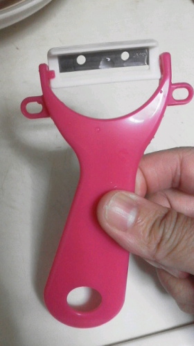 夏の体験キャンプでカレーを作ったのが楽しかったようで「今日の夕飯はカレー」と言うと「私も一緒にやる~~!!」と言うので買い物ついでに100均にピーラーを買いに行った。ねぇねが選んだピンクのピーラー、早速、7時までのTVの間に皮むきのお手伝いをしてもらった。自分で選んだ道具を使って、何とか、にんじん、じゃがいもと皮をむいていく。ところが、途中で刃がすべって指を切ってしまった。。。うるうる泣きそうな顔。。。イエローカードでキッチンから退場させた。包丁で指を切ろうものなら、大泣きか?(笑)ありゃりゃ、困ったなあ。。ねぇね。。。洗面所で指を流水で洗わせ、すぐに絆創膏を貼って処置。後は私がカレーを作っておしまい!!次、一緒に作る時は材料を全部、切ってもらおうかなそれも面白そう!!徐々にやって、自分でカレーを作れるようになってくれ!!頼むよ、ねぇね。。。