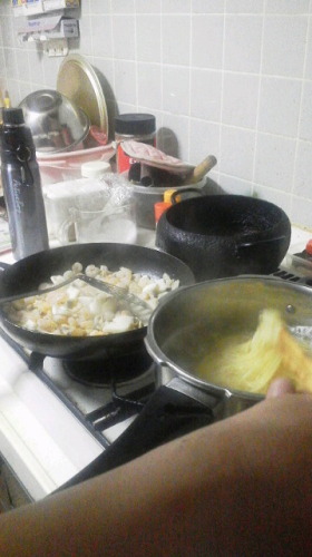 今日はパパが休みの日、ゆづの幼稚園の送迎を引き受けてくれ、夕飯も作ってくれると言う。。。ラッキー!!そこで仕事帰りに日用品の買い物に出た。。帰ってきてみると、ピカピカのキッチンにビックリパパが手を出すと徹底的に掃除するのだ。。。ぐうたらママを地で行く私に彼はよく愛想をつかさないよなと思う。。ぼんやり考えている間に、パパちゃんは料理を開始。。。シーフードスパゲティを作ると張り切っている。。。台所にはフライパンで具を炒め、調理、もう一つのコンロでスパゲティを茹でてる、手際は以前より良くなったと思う。味は食べてからのお楽しみで、みんなで皿にスパゲティを盛り、食卓を囲んだ。具に味はしっかりついてるのに、スパゲティにはついてない、残念!!写真で見るとすんごく美味しそうに見えるのに。。。パパちゃん、今度作る時までの宿題ね!!ねぇねは「お父さんの料理、おいしかったよ、お母さんはどうだった?」私と話して、笑い合ってる所へパパちゃん登場。。。何、楽しそうに笑ってるの?って言うのに対し、ねぇねに聞いて!!と私は含み笑いを残して、本を読んでいた。パパちゃんはねぇねをくすぐったけど、全然ダメ。。女同士の秘密って事で。。。。(笑)