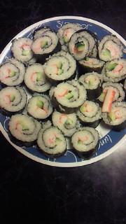 今日は保育園にゆづを迎えに行ったら、紙袋で作った「おにさん」を持って帰ってきた。彼女は自宅への帰途、それをしっかり持って離さない。。。「おにさん、おにさん」今日は節分、豆まきもして楽しかったようだし、ねぇねも「今日は節分でしょ?」って。。。今日の夕食は恵方巻のつもりでかにかまときゅうりを具に巻き寿司を作った。パパがから揚げととり天を買って来て、その間にお吸い物を作って添えたら「うわあ、ごちそうだよね」そう言ってもらえるとホッとする。「みんなで食べたらおいしい~~」って。。。皿のお寿司もから揚げもみんなカラッポになった。ごちそうさまでした~~^^