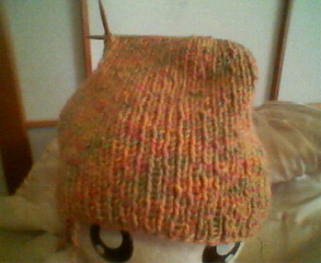 埋もれていた6号の輪針と6号~8号の毛糸で帽子にチャレンジ!!面白い糸の毛糸なんで帽子を編んでみた。これで40段程度、ねぇねのぬいぐるみにかぶせてみたら、こんな感じ(笑)マフラーと並行しているんで休み休みだけど、どっちも出来上がりが楽しみ^^