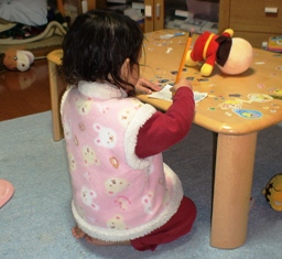 お絵かき?書道?なんか知らないケド、ちゅんた先生が一心不乱に書き続けてる♪でも正座ってシブくない?【書の先生みたいだね~】