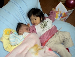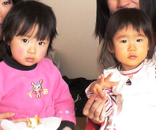 ちゅんたはホント元気♪いっつも裸足で遊びまわってるミ(*^▽^*)ノ彡☆(ちょっとウルサイけど)ユータはとってもいい子♪おっぱいをいっぱい飲んで良く寝てくれるミ(*^▽^*)ノ彡☆(5.5kgと、ちょっとデカいけど)ところで、パパとママ。昨日ジーンズを買いにいったら、二人とも前のサイズ入らず…【手がかかりません(・-・*)ヌフフ♪】