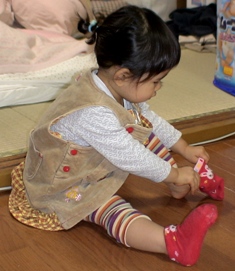 もうじき2歳になるアタシとしては、自分のことは自分でやります!ってな訳で、お着替えはお手の物だよ~ミ(*^▽^*)ノ彡☆【人魚??】パパママ「片方に両足入ってるじゃん( ̄□ ̄;)?!」