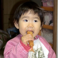 揚げ物。。ちゅんたファミリー未知の世界…そんな未知の領域にママは最近、足を踏み入れ始めました☆ぉお!!(゚ロ゚屮)屮【手づかみで!】【カブッっとね♪】