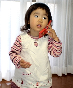 ケータイ好きなアタシ。新年早々にゲットしたのはアンパンマンケータイ(・-・*)ヌフフ♪軽くて使いやすいのよ♪パパママ「だって紙製だもん…」【サマになってる…】