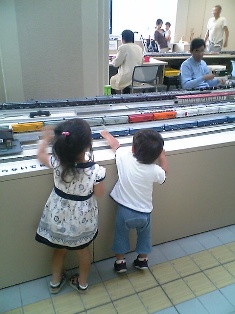 先日、なゆたに行ったら鉄道模型が展示中☆うたぼ大興奮!と思ったら、ちゅんたも興味津々♪この子ら鉄っちゃんか?!【触っちゃダメよ】