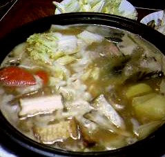 ウチでは、鍋料理はよくするけど、ちゃんとした石狩鍋は初めてかも?!白菜や大根、じゃがいもなど、野菜をたっぷり入れて…。