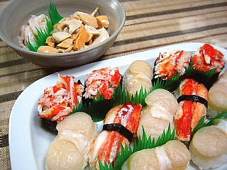 一緒に買ったカニもむきむきして、握り寿司に初挑戦!