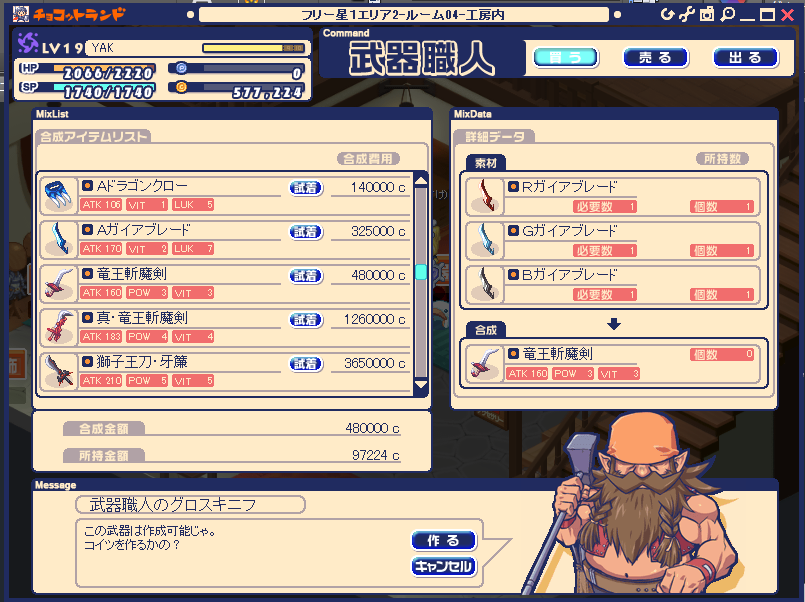 7/23 ねんがんの りゅうおうざんまけん を てにいれたぞ!これで れんきんの おっさん に あたらしい かたな れんせいしてもら…おっさん「ちょう・りゅうおうざんまけん を ようい してもらおうか」ふ ざ け ん なしばらく気を養ってからやります……ペットは金と手間がかかる(物理)