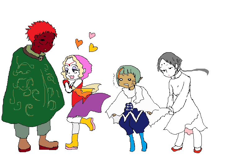 >Touge:神官>Medes:魔物使い(スライム限定)>Sigeri:盗賊>Kase:弓兵魔物使いが自分もレベル低いくせして見下してくるわ面倒ごとを押し付けてくるわUZZZZZZZZAI